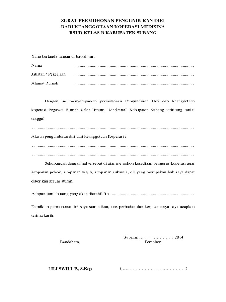 Surat Permohonan Keluar Dari Anggota Koperasi Pdf